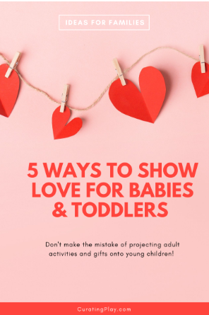 Valentine’s Day is an occasion typically acknowledged by candy, cards, and gifts—gestures and offerings that hold little to no meaning for babies, toddlers, and preschoolers. Instead of falling into the trap of celebrating Cupid with pink and red doily crafts and store-bought trinkets, consider these five ways of expressing love to the babies and toddlers in your life! Note: These suggestions focus on babies and toddlers, but they could certainly be expanded to work for older children as well!